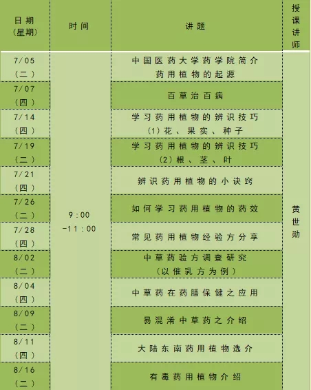 课程名称:认识药用植物轻松入门