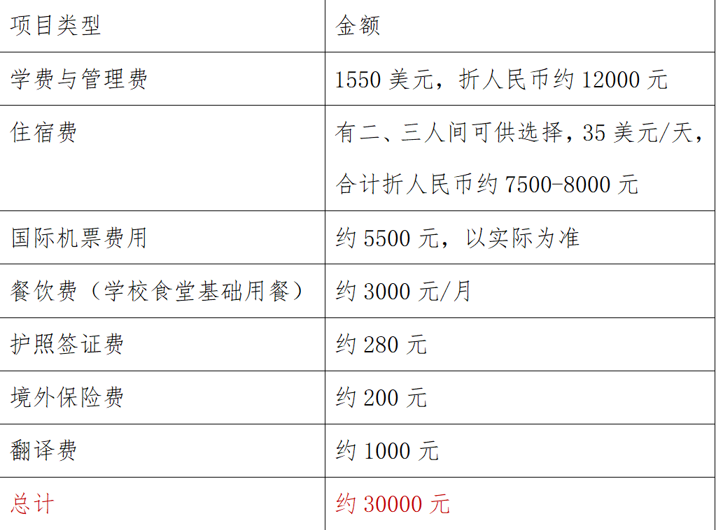 备注:以上费用仅为游学期间基本费用,不含学生在韩个人消费费用。同时,由于受汇率、预订机票时间、预订住宿时间影响,项目总费用会有浮动。