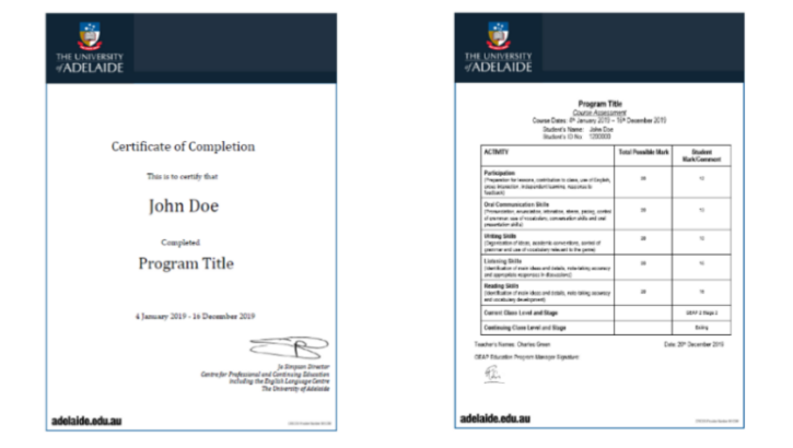 项目学生将分别由悉尼大学与阿德莱德大学进行统一的学术管理与考核。考核方式包括